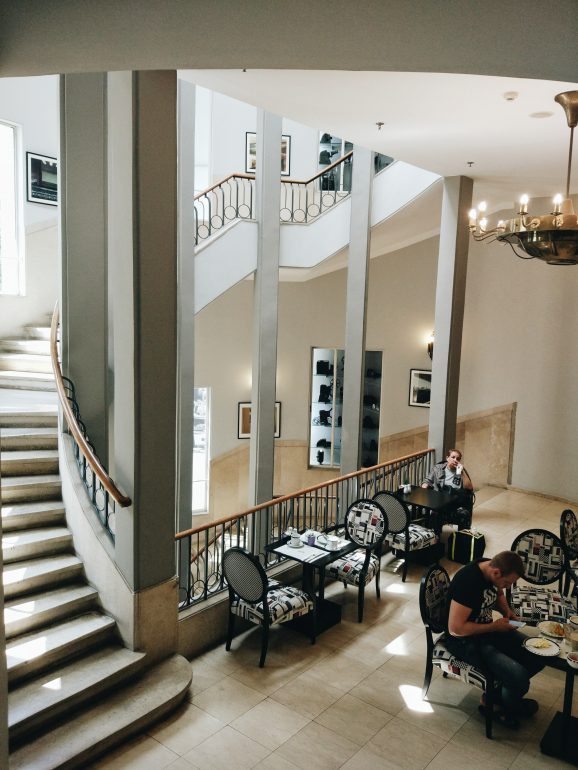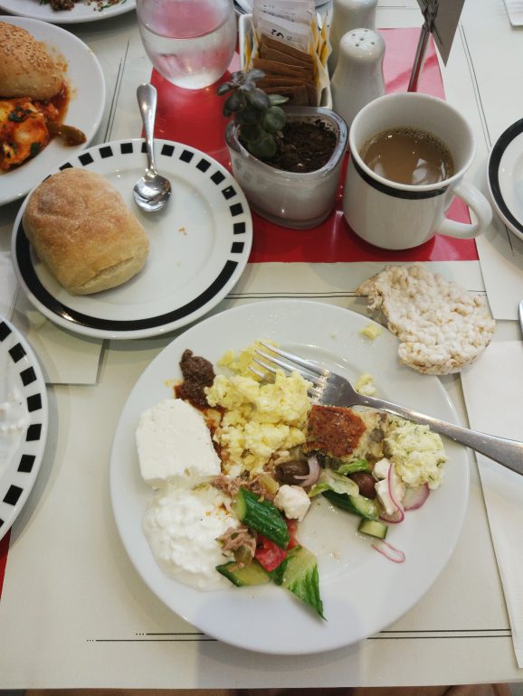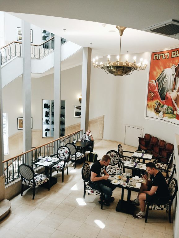 Our favorite kinds of breakfasts are Israeli hotels breakfasts! This is Tel Aviv’s best kept secret! All you can eat breakfast buffet for 70 NIS. Right on Dizzengoff square. In 1938 this hotel used to be a cinema and was converted to a beautiful hotel in 1998.