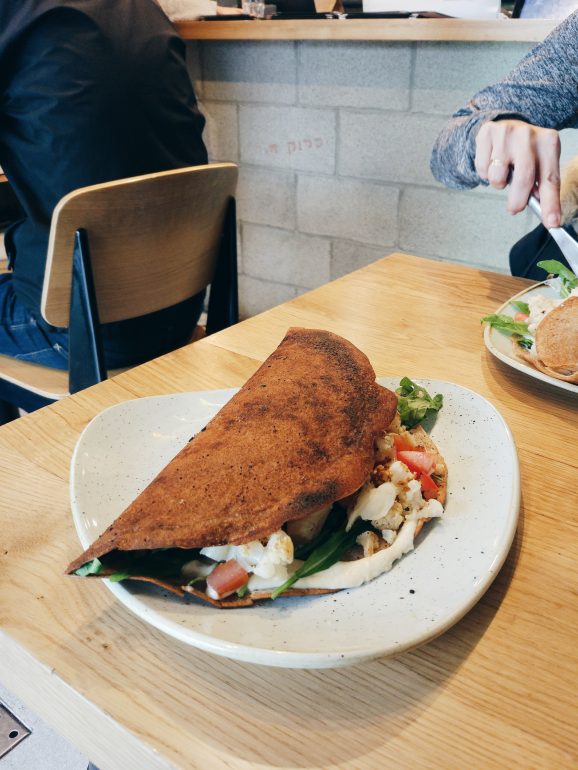 New restaurant in Tel Aviv, 100% vegan! You should definitely try the cauliflower crepe! also, the vegan burger 🙂