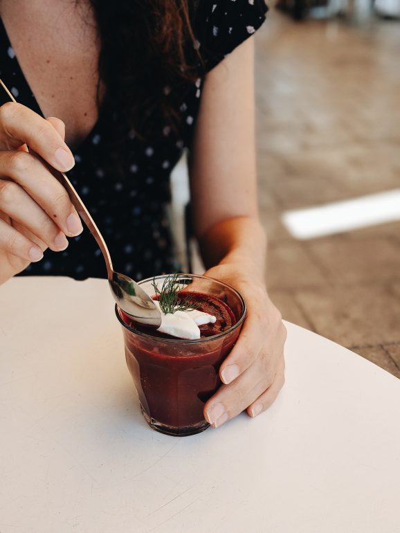 We tried the Beet gazpacho, shrimp burger and the Tikka chicken, all were delicious!
