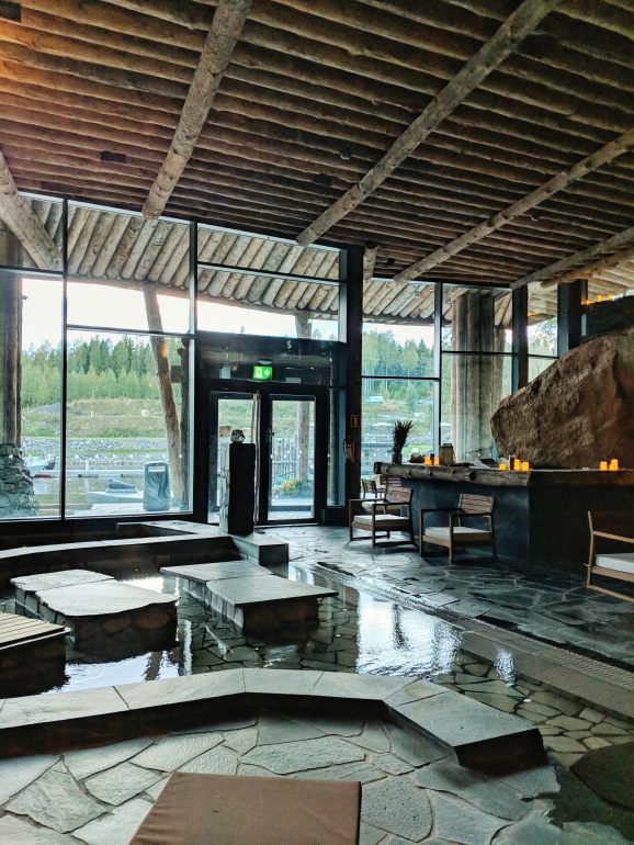 It also has a breathtaking Spa complex with an indoor and outdoor pools and many saunas. The hotel is located three and a half hours drive from Helsinki.
