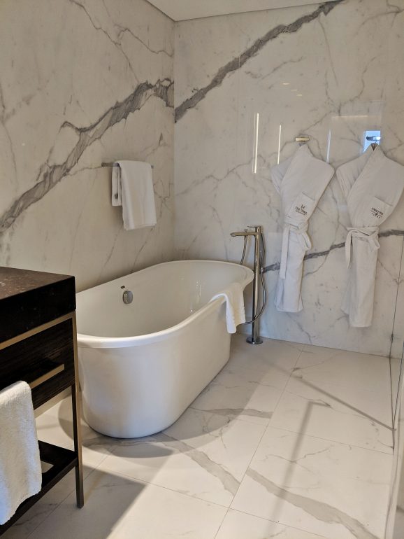 After a warm welcome at the reception, we went up to our room in the seven’s floor, located in the new wing. We were given the premium room with a spectacular view of the old city. The design of the room is luxuries, modern and chic. It was very clean, spacious and beautifully designed with clear attention to details. The bathroom was also well-design with a “his and hers’ vanity and pampering bathrobes.