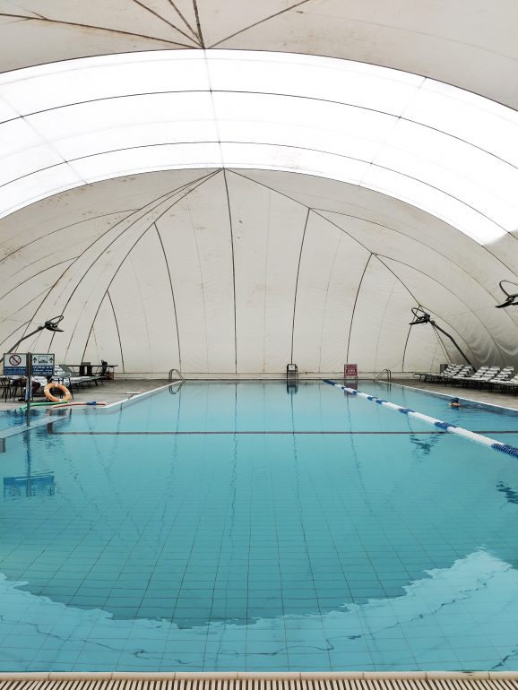 The hotel was built 36 years ago (designed by the famous architect Yaakov Rechter) and had a few renovations since then, but the recent renovation was the biggest one, where two more floors were added, and instead of the common Jerusalem stones, the new floors were plated in gold-tone, which is very unique and beautiful 🙂