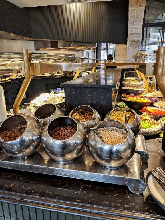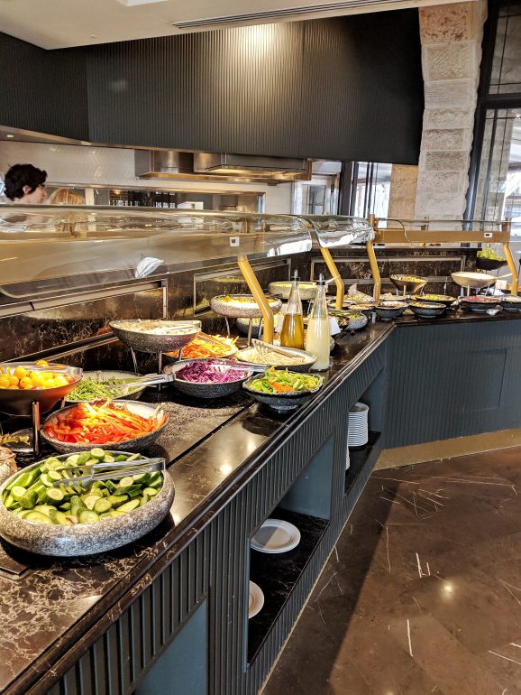 Besides the buffet breakfast and the business lounge, the hotel has many dining options, including the Coffee bar which offers drinks and light snacks and the hotel will soon open a new chef’s restaurant called “02” by the chefs of Mona restaurant (our favorite restaurant in Jerusalem).