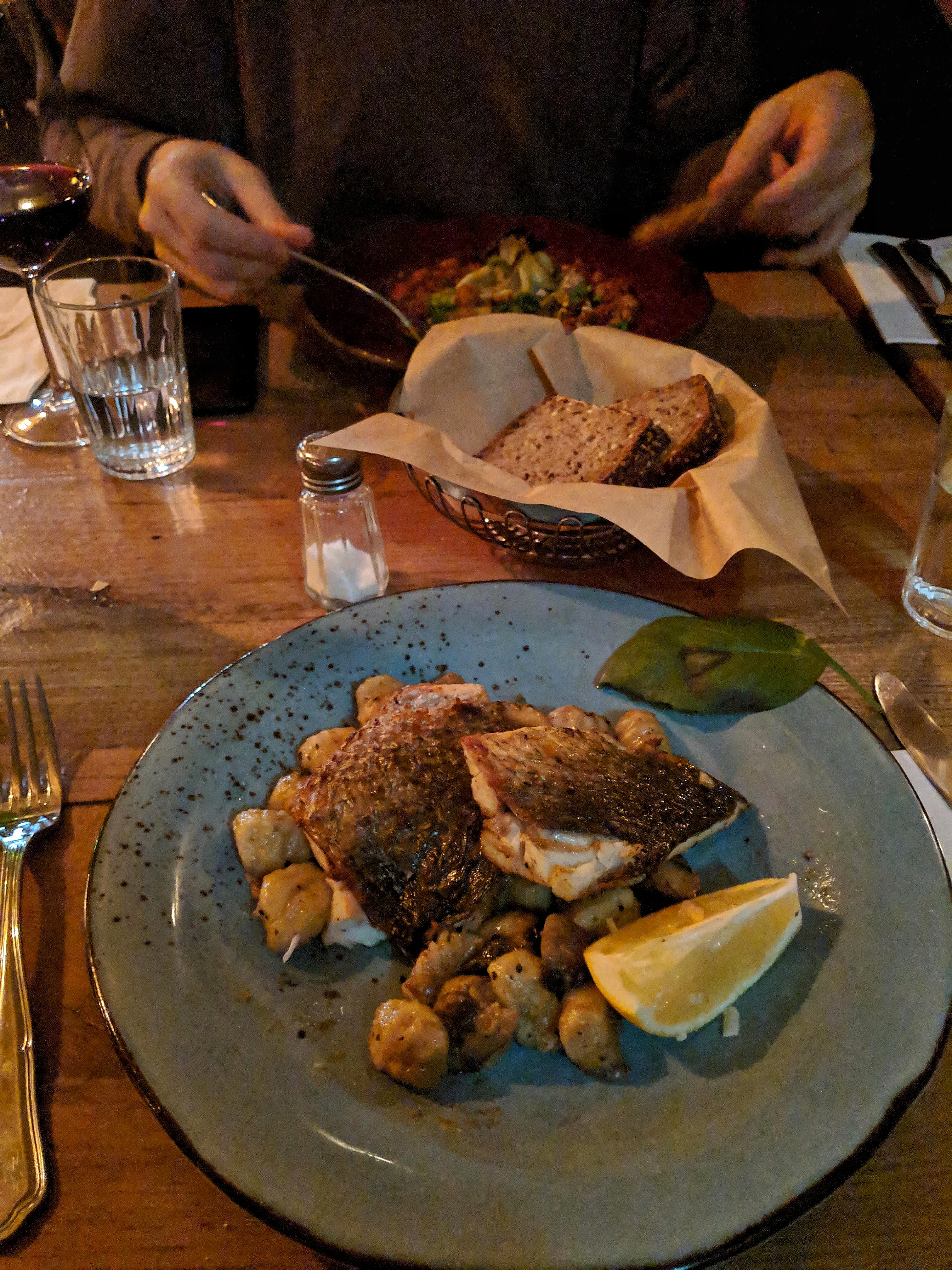 For the first courses we tried the Parmigiano Baked cauliflower, Sashimi and Shrimp in garlic butter, we enjoyed all the dishes and we wished we had more! for main dishes we had the Sea Bass Fillet, Creamed risotto, and the Pasta, the dishes were ok, but we recommend getting a lot of Starters and share them 🙂
