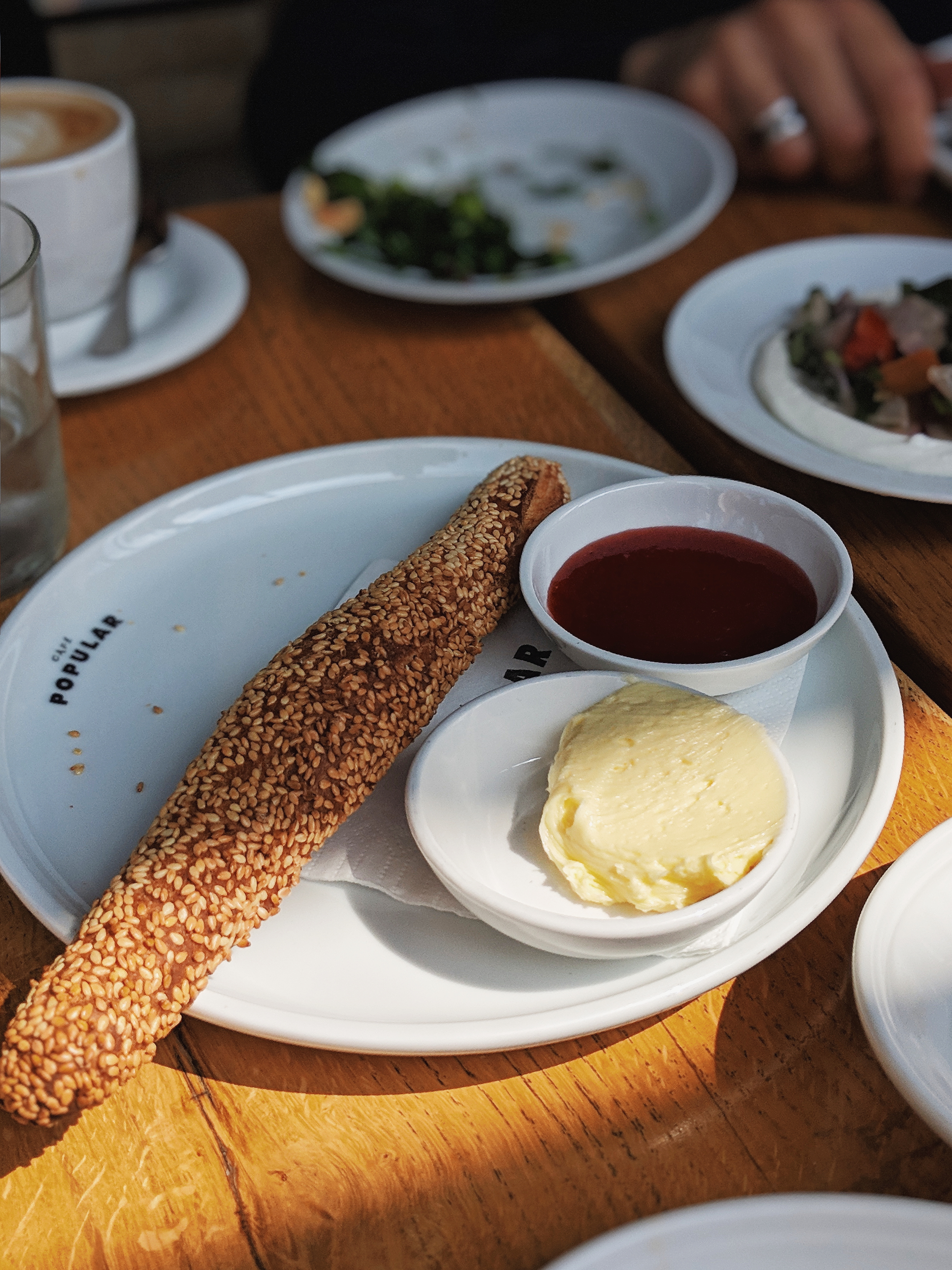 אחרי ששמענו כל כך הרבה דברים טובים על הבראנץ' של קפה פופולר החלטנו ללכת ולבדוק בעצמנו. הבראנץ מוגש בכל שישי ושבת בין השעות 10:00-14:00 (כדאי להזמין מקום לפחות שלושה שבועות מראש). הישיבה במסעדה נמצאת בקומת הכניסה למלון ג'ייקוב סמואל (בצומת הרחובות דיזינגוף וארלוזרוב) ופתוחה לרחוב (בניגוד לבר של קפה פופולר, שנמצא בקומת המרתף). המחיר לבראנץ' הוא 98 ₪ לאדם וכולל 14 מנות טעימות (קטנות ובינוניות) שמוגשות למרכז השולחן (עם מילוי מחדש לכל מנה שתרצו).