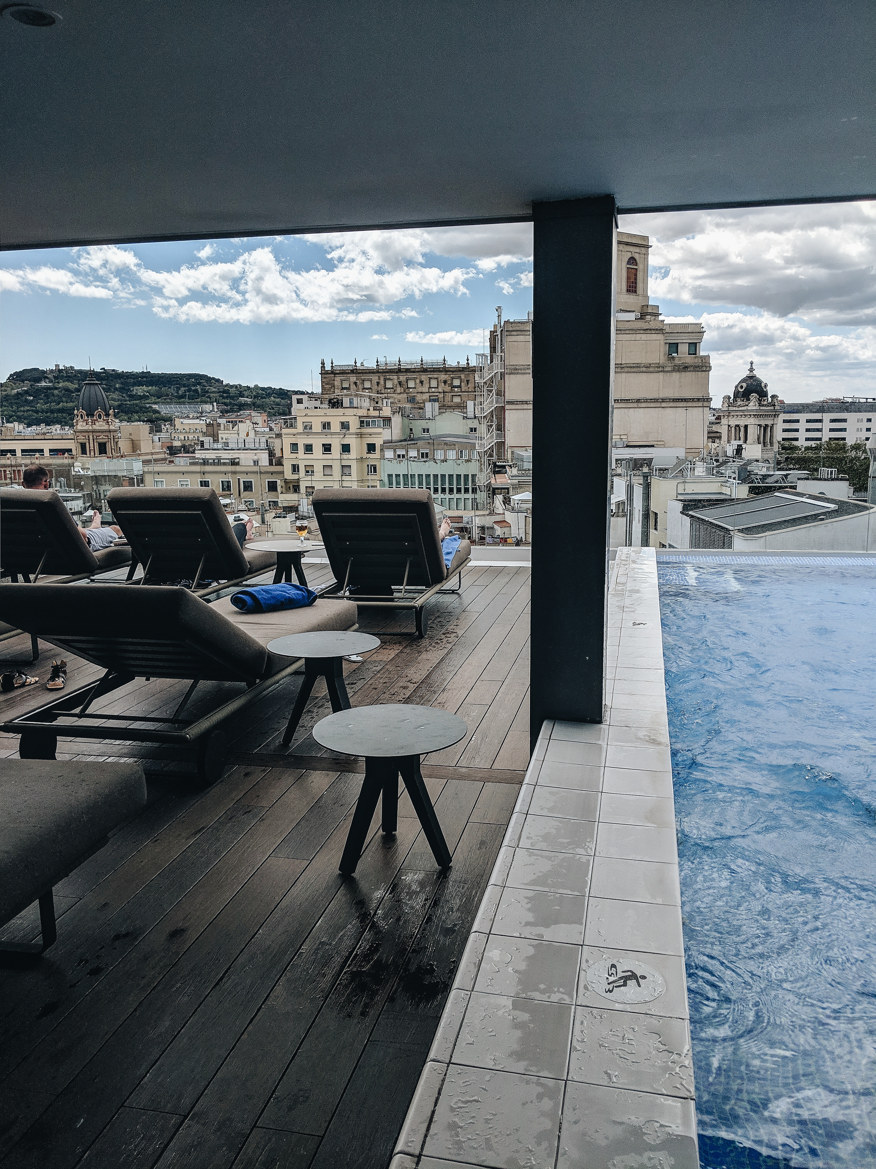 Our room was large and minimalist and clean, and the most important part – a stunning roof with a pool! As soon as we went up to the roof it was hard to get off. On the roof, there is a stunning restaurant and bar, lounge chairs, insanely comfortable tanning beds, and infinity pool, all overlooking the amazing view of Barcelona and the sea!
