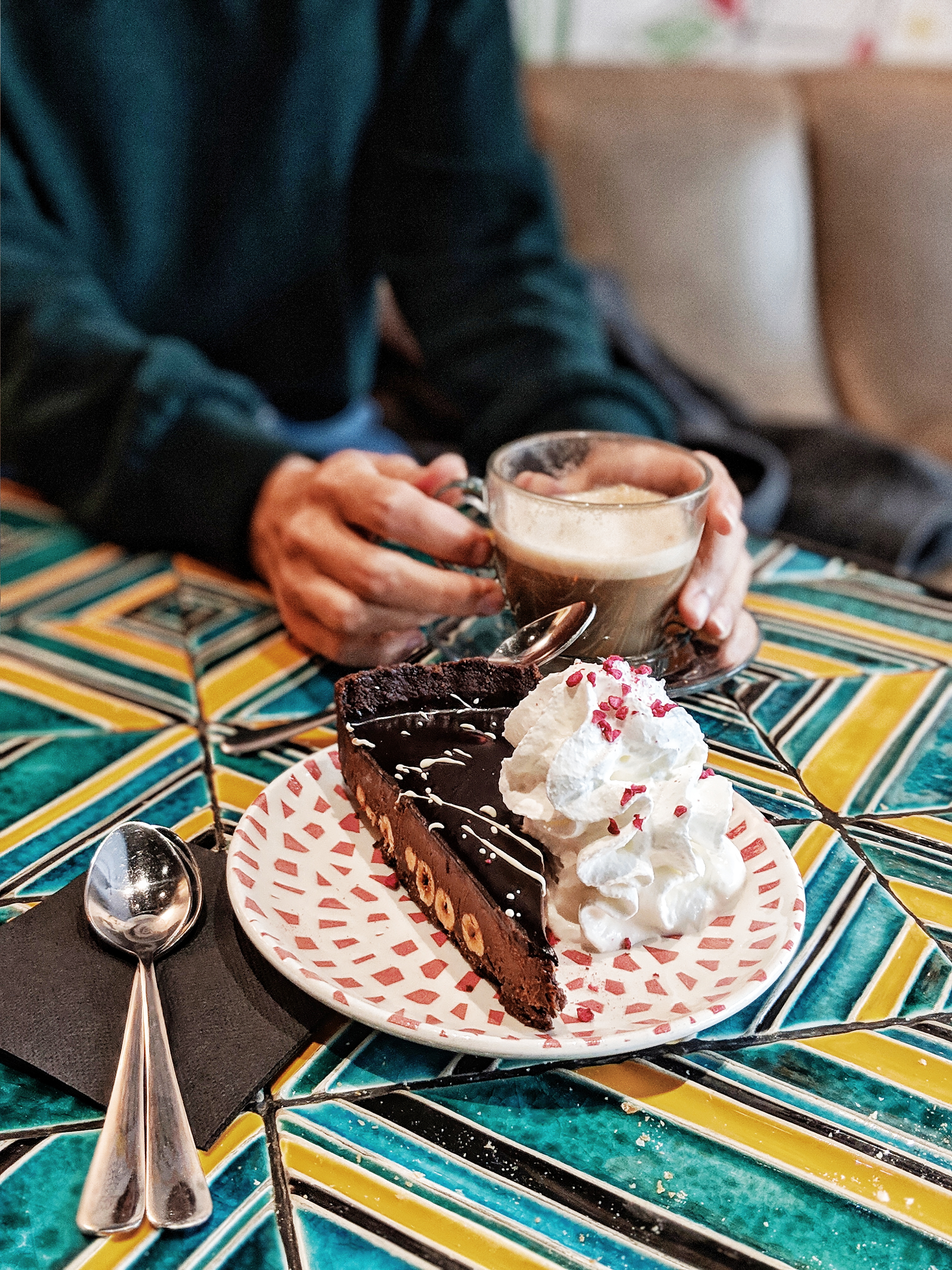 הגענו בצהרי יום סגרירי ובושוויק היווה תפאורה מושלמת ליום שכזה. הספות, השטיחים והצבעים הישרו אוירה כל כך נעימה כשבחוץ יורד גשם. והכי חשוב, הטמפרטורה הייתה מושלמת. כשבחוץ היה קר, לנו היה חמים ונעים בפנים (משהו שקשה למצוא בתל אביב, ברוב במקומות אנחנו מוצאות את עצמנו יושבות לאכול עם מעיל מסורבל…).