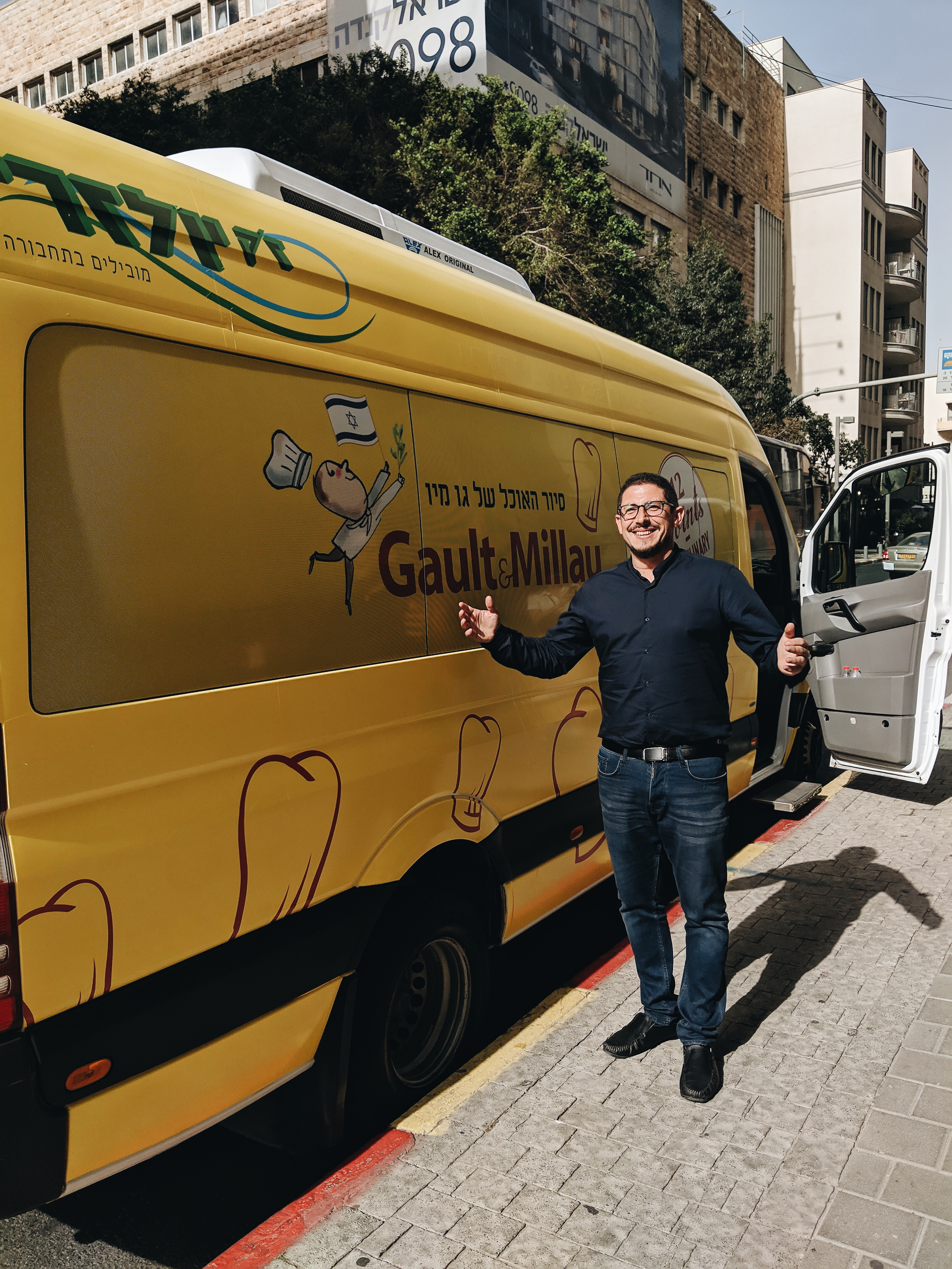 המגזין הקולינרי הבינלאומי Gault Millau הזמין אותנו לחוות את הסיור הקולינרי החדש שלו – 12 מנות ב-12 מסעדות בתל אביב. נקודת המפגש היתה בתחילת רחוב רוטשילד שם חיכה לנו המדריך דוד. עלינו על מיניבוס צהוב ממותג, לכל אחד חיכה על המושב בקבוק מים והמדריך הקולינרי של Gault Millau. הנסיעה במיניבוס בין תחנה לתחנה בשעות אחר הצהרים איפשרה מעבר מהיר ונטול פקקים לרוב חלקי העיר.