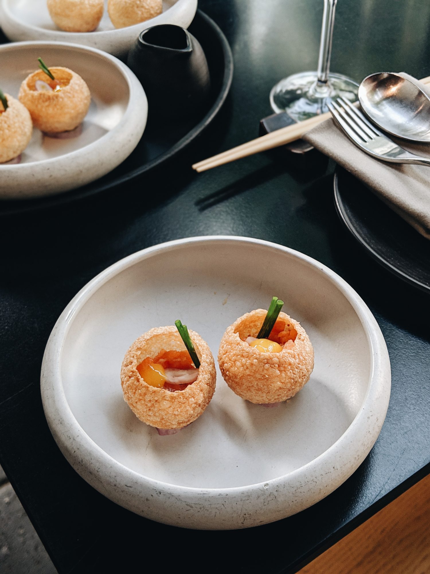 תחנה מספר 10: יא-פאן המנה: פורי עם טרטר דגי ים, פונזו מתוק, חלמון ועירית
