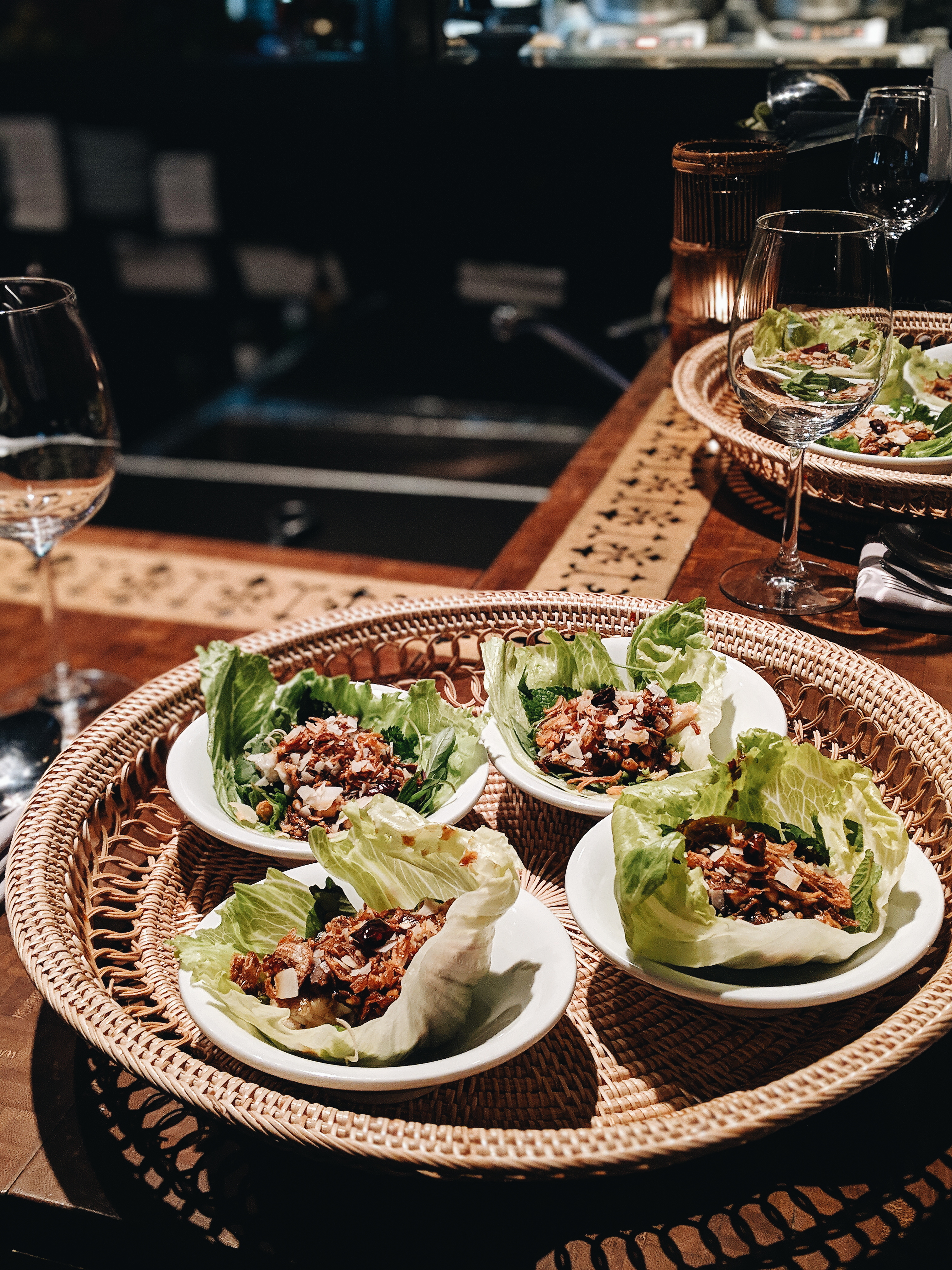 Station No. 9: Kab Kem The Dish: Iceberg Lettuce, covering a piece of sea buss fillet with herbs, roasted coconut, onions and crispy garlic, cashews and a delicate spicy tamarind sauce.