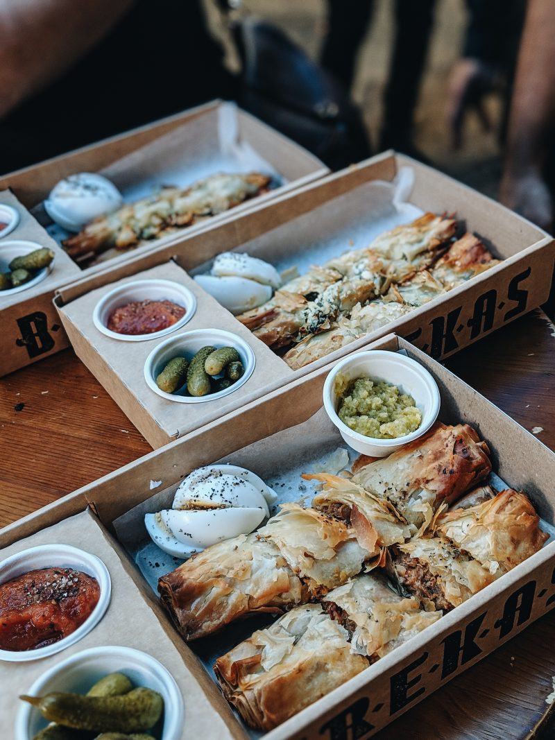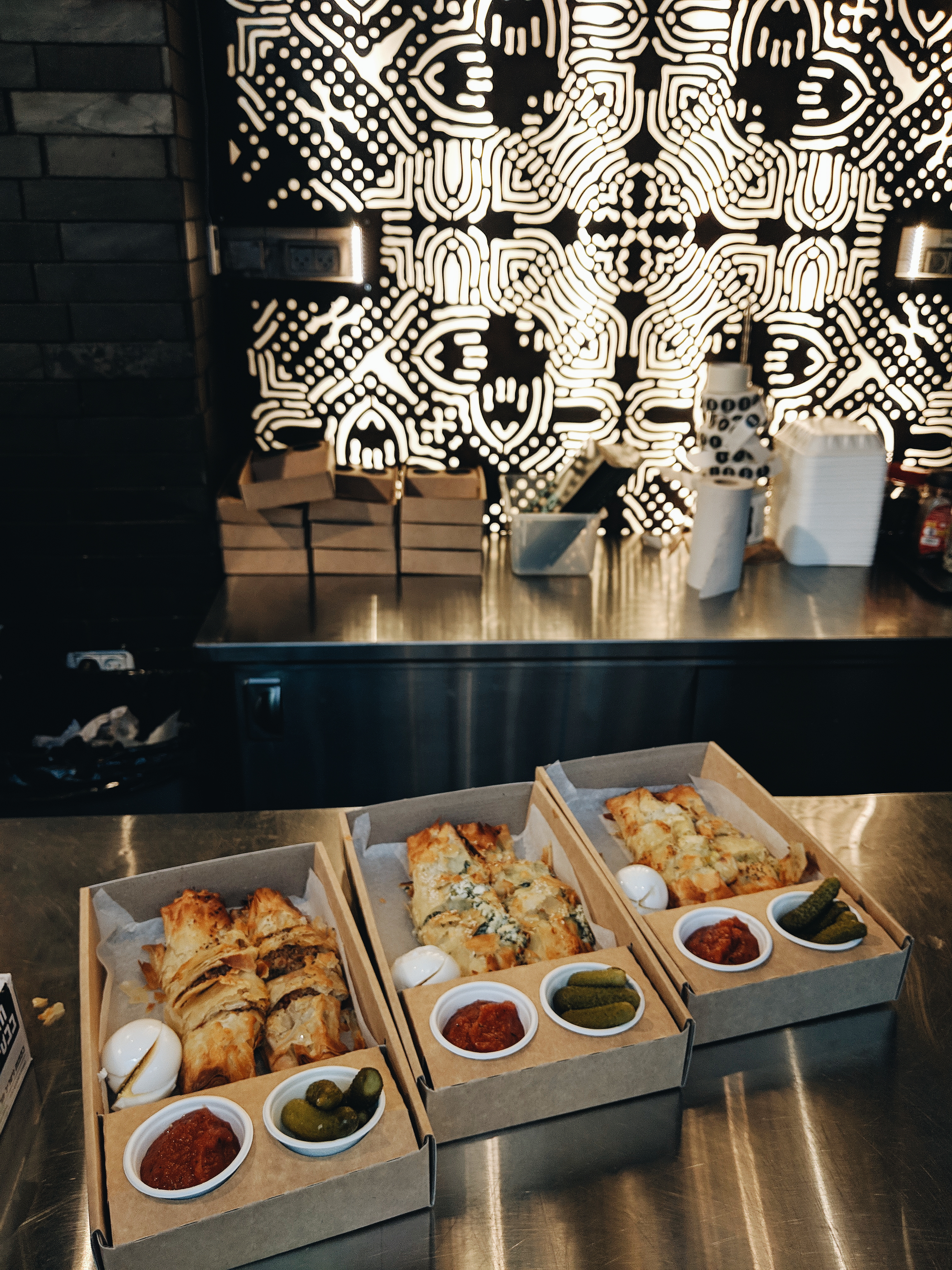 Station No. 6: Burekas TLV Dishes: Shrimps Burekas, Goat Cheese Burekas and “Philly cheesesteak” Burekas