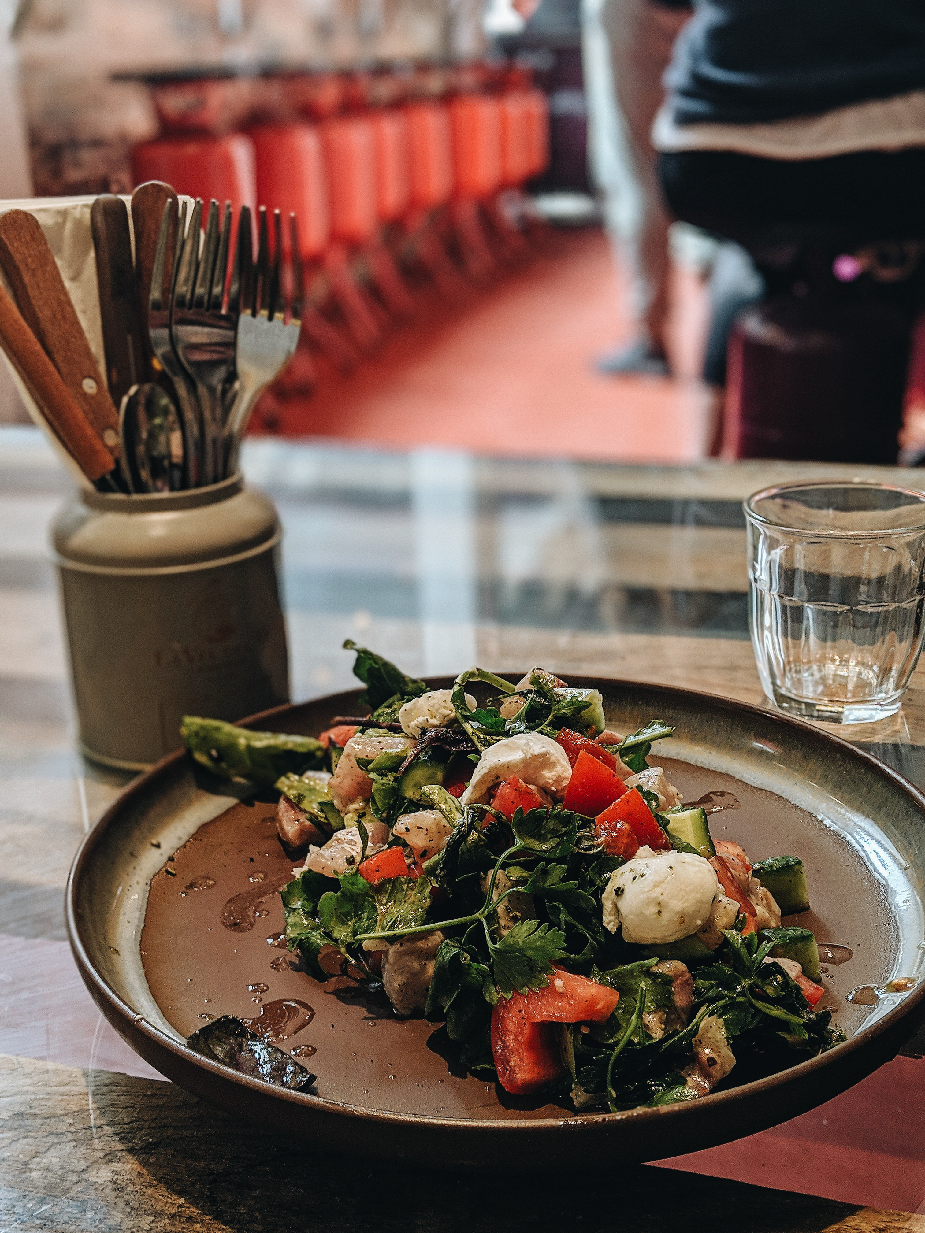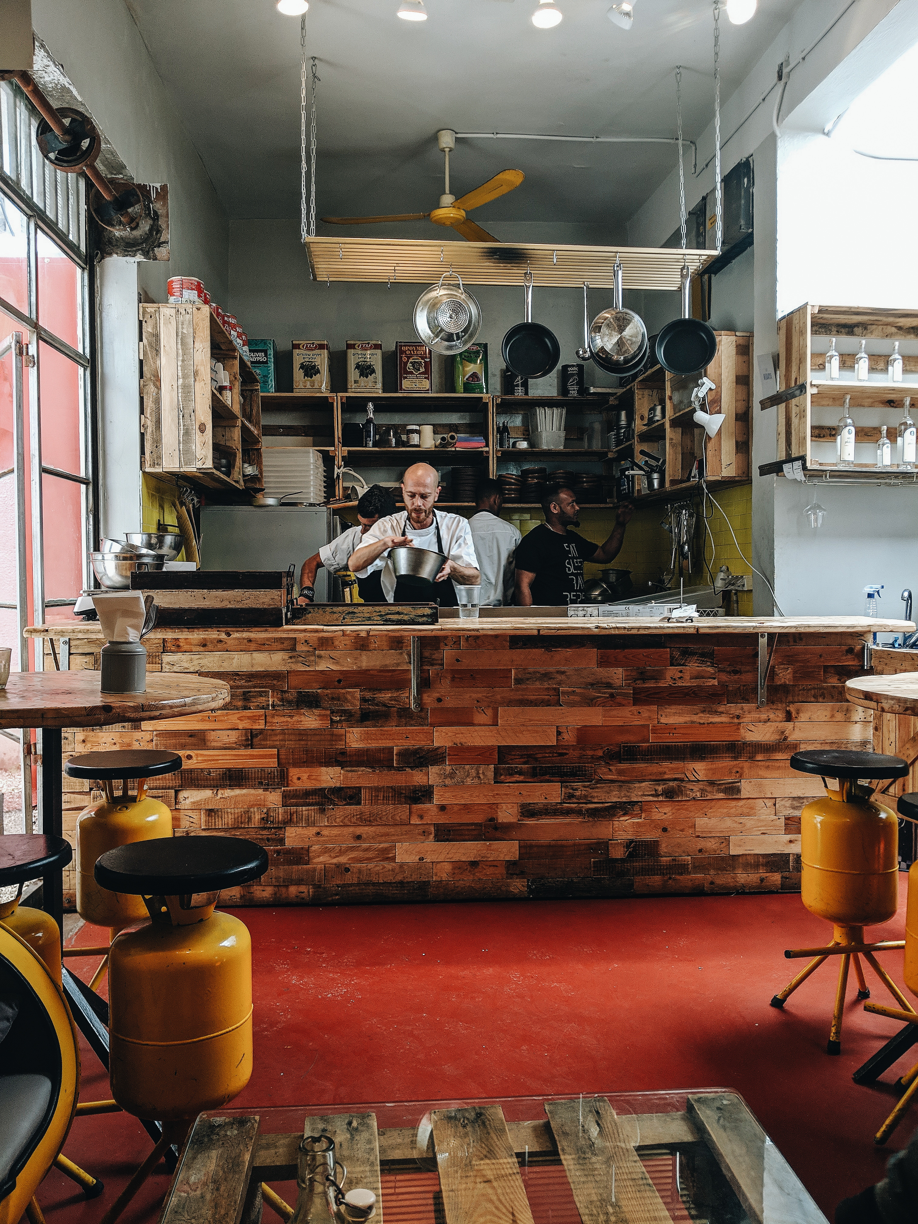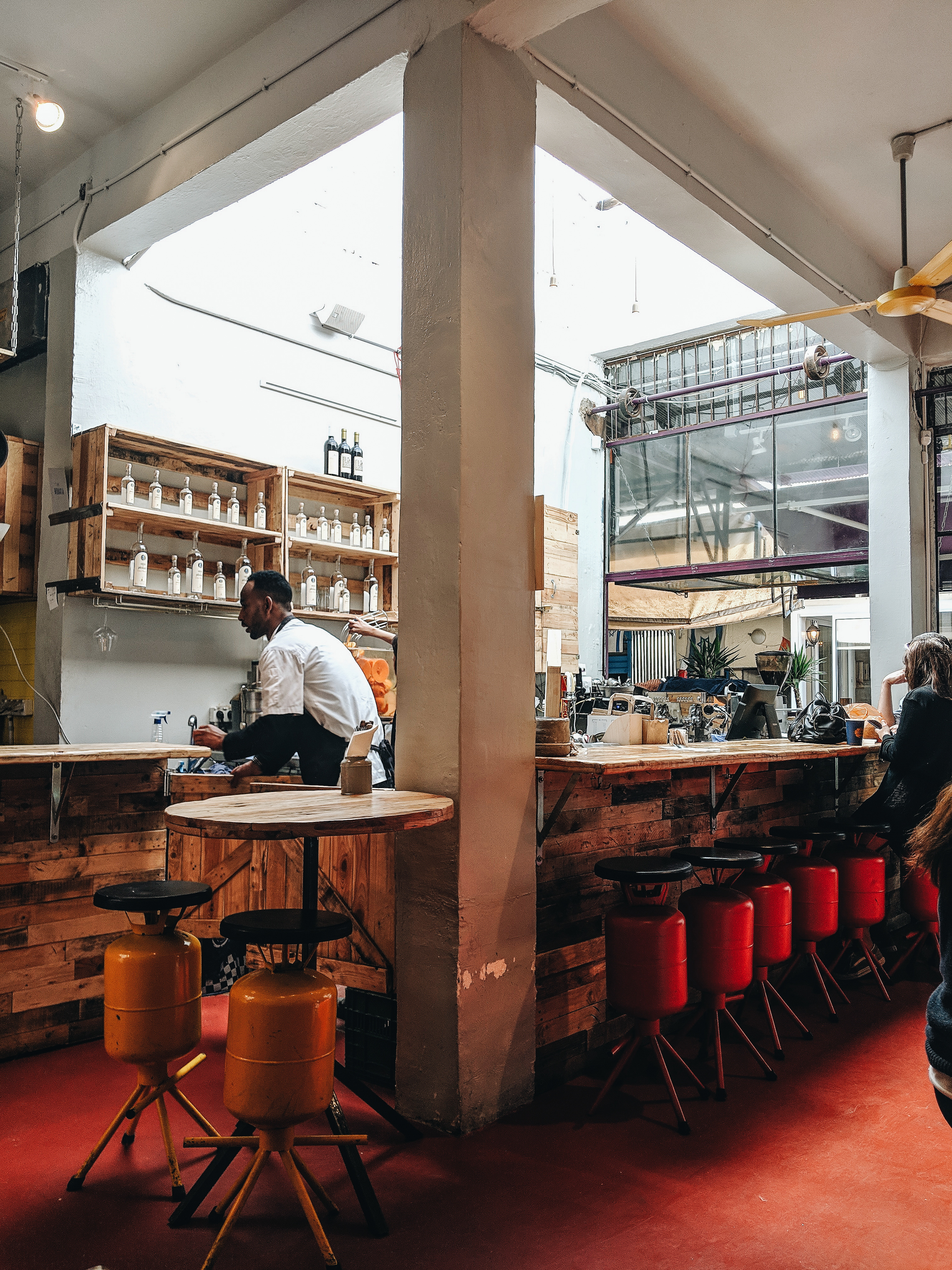 It seems that a lot of thought has been invested in the design of the place, and at the same time it is very integrated with its environment. The chairs of the cafe are made of recycled gas tanks in all kinds of colors, which gives the atmosphere a really cool and special vibe.