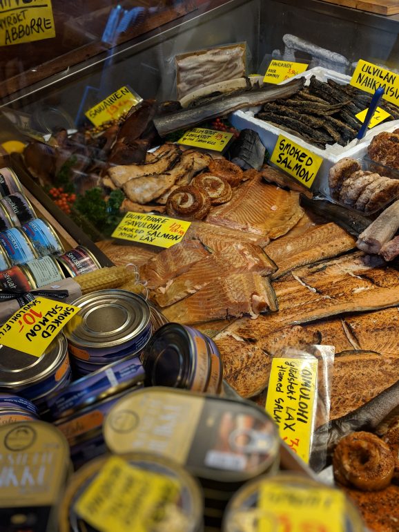 חמש דקות הליכה ממלון F6 מצאנו את כיכר השוק עם ספקים רבים המוכרים אוכל פיני טרי ומזכרות מקומיות. אולם השוק הישן ממקום במבנה ממש ליד הכיכר, עם מגוון גדול מאוד וטעים של מעדני גורמה פיניים באולם עתיק ויפה. ניסינו דגים נאים על לחם שיפון פיני ומרק סלמון, היה מצוין!