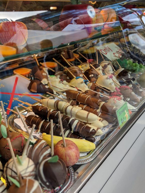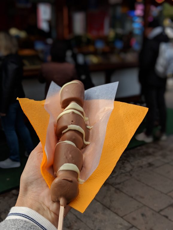 השוק הבינלאומי מציע מעדנים מכל רחבי העולם, כל דוכן מציג מדינה אחרת, כך שאפשרויות האוכל כאן הן אינסופיות! ניסינו את הבננה ותות השדה טבולים בשוקולד בביתן הגרמני, היה טעים!