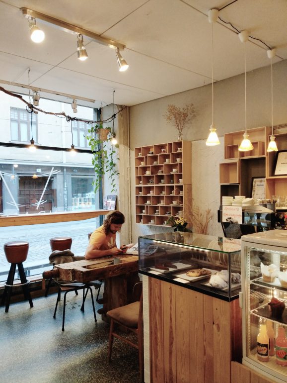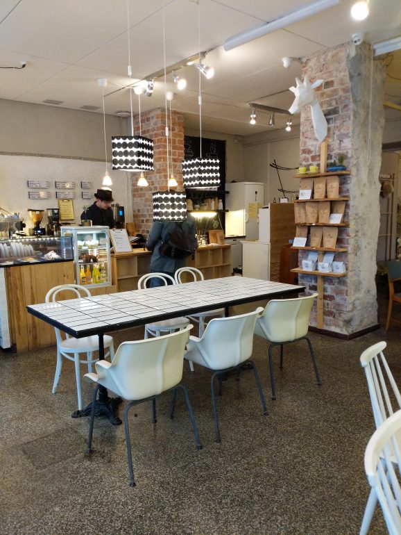 אחרי הארוחה הענקית טיילנו ברחובות הלסינקי בחזרה למלון שלנו, שם נתקלנו בבית הקפה ההיפסטרי היפהפה הזה. המקום מציע בית קפה איכותי ועוגות גלם (נהדר עבור טבעונים).