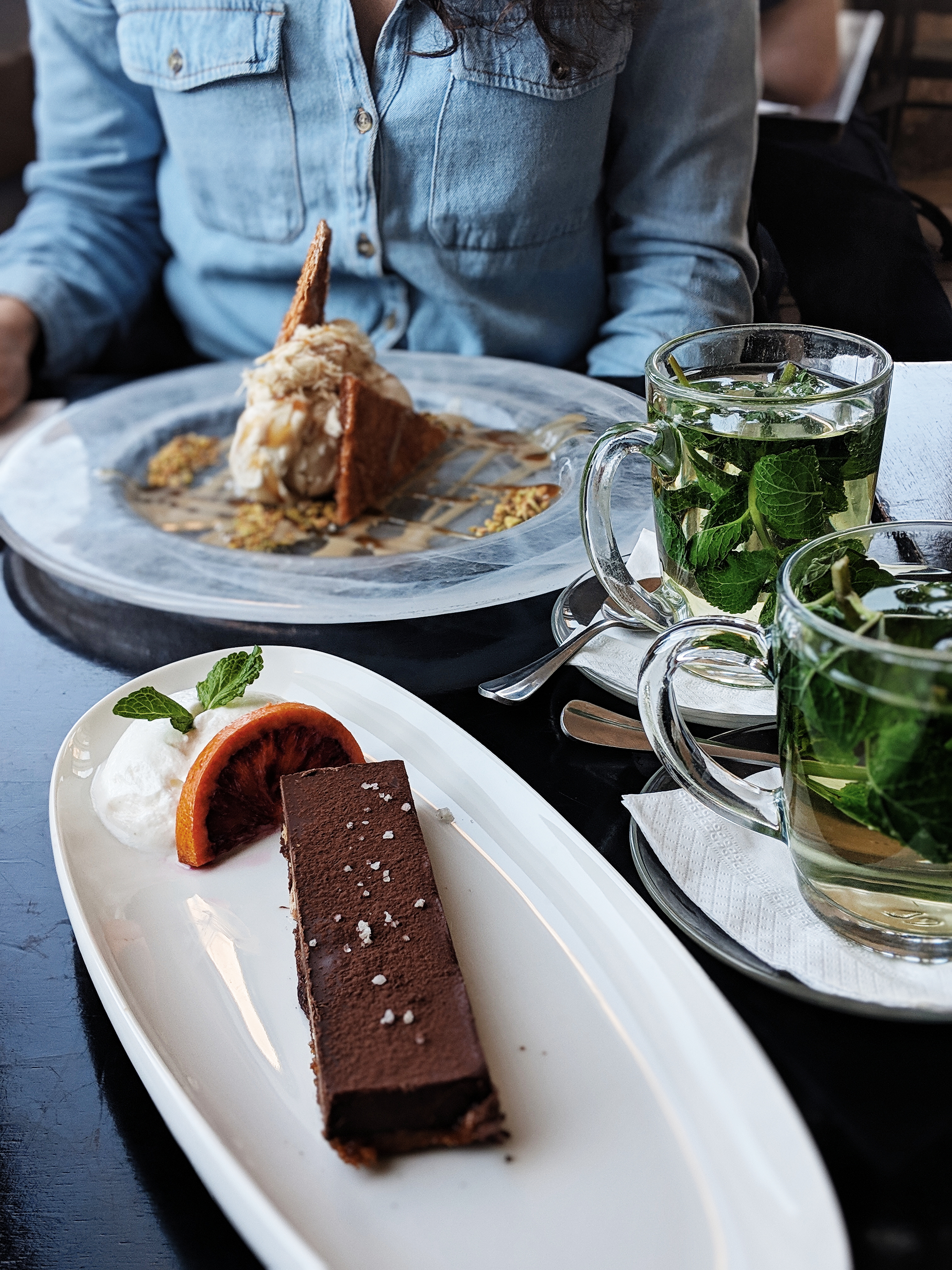 ניסינו את הפיצה ביאנקה עם מקרל ותפוחי אדמה, קלמרי מקומי, שרימפס שלם, בורק שרימפס, קרפצ'יו דג ים וסיימנו עם גלידת טחינה ותענוג שוקולד ולרונה. כל המנות היו ממש טעימות!