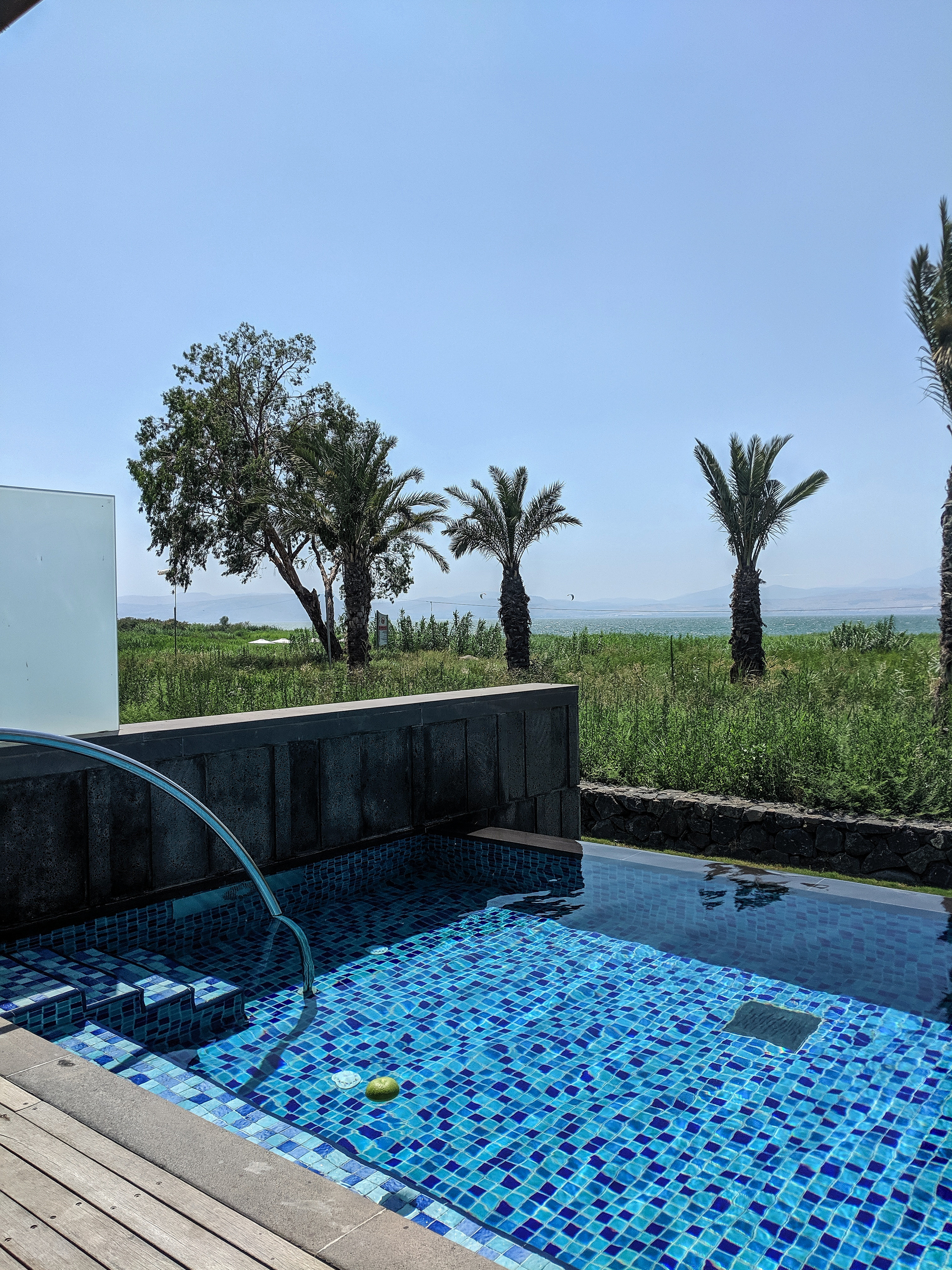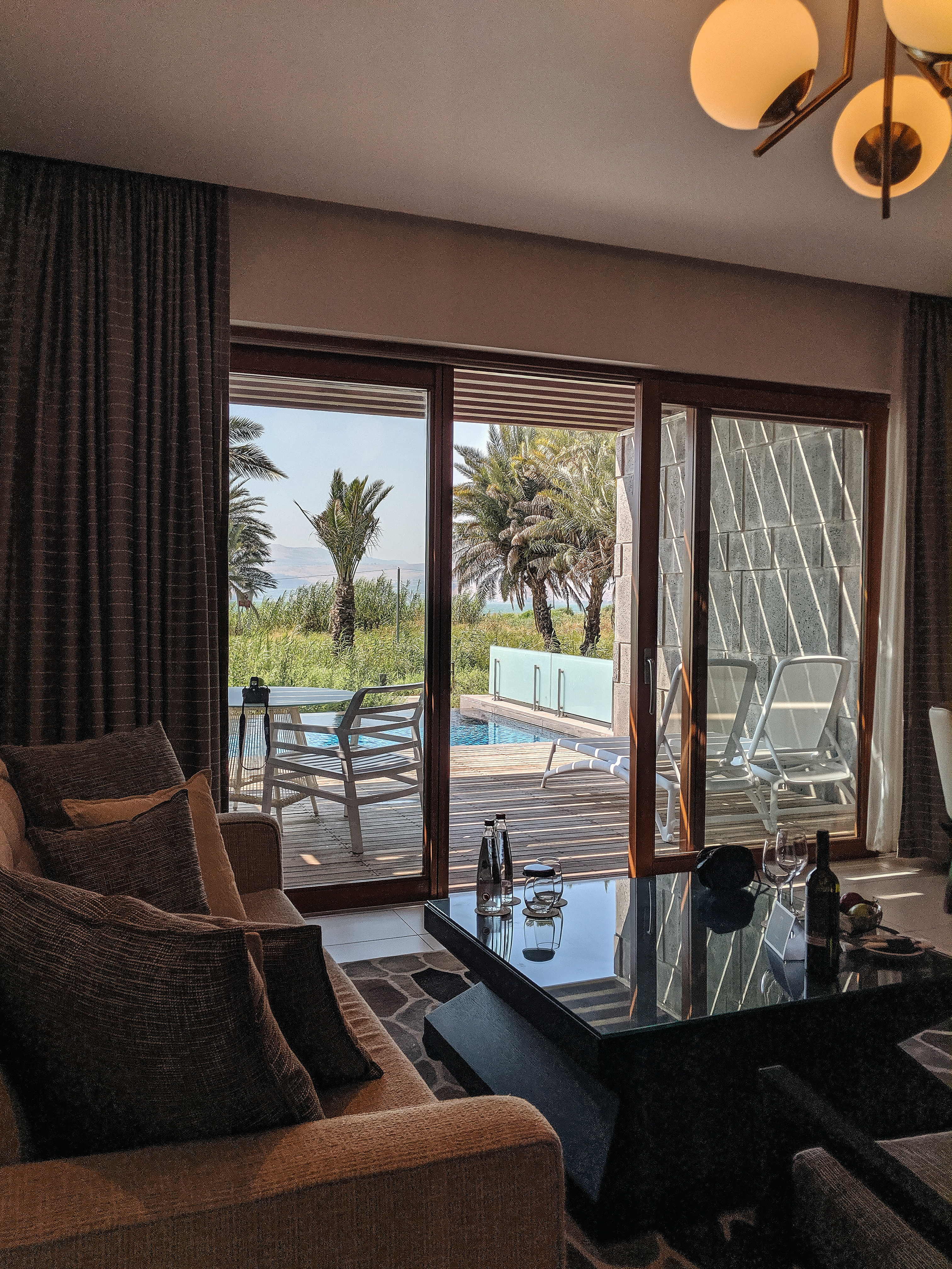 אל החדרים ניתן להגיע באמצעות קרוניות גולף קטנות, אבל משום שהחדרים שלנו היו יחסית קרובים ללובי, הלכנו ברגל. החדרים היו מאוד גדולים, ממש כמו דירות ומעוצבים בקפידה. הבריכה הפרטית היתה פשוט מושלמת עם נוף ישיר לכנרת ללא חוצצים. בחדר חיכו בקבוק יין, פירות ובקבוקי מים מינרלים – פינוקים קטנים שעושים את ההבדל.