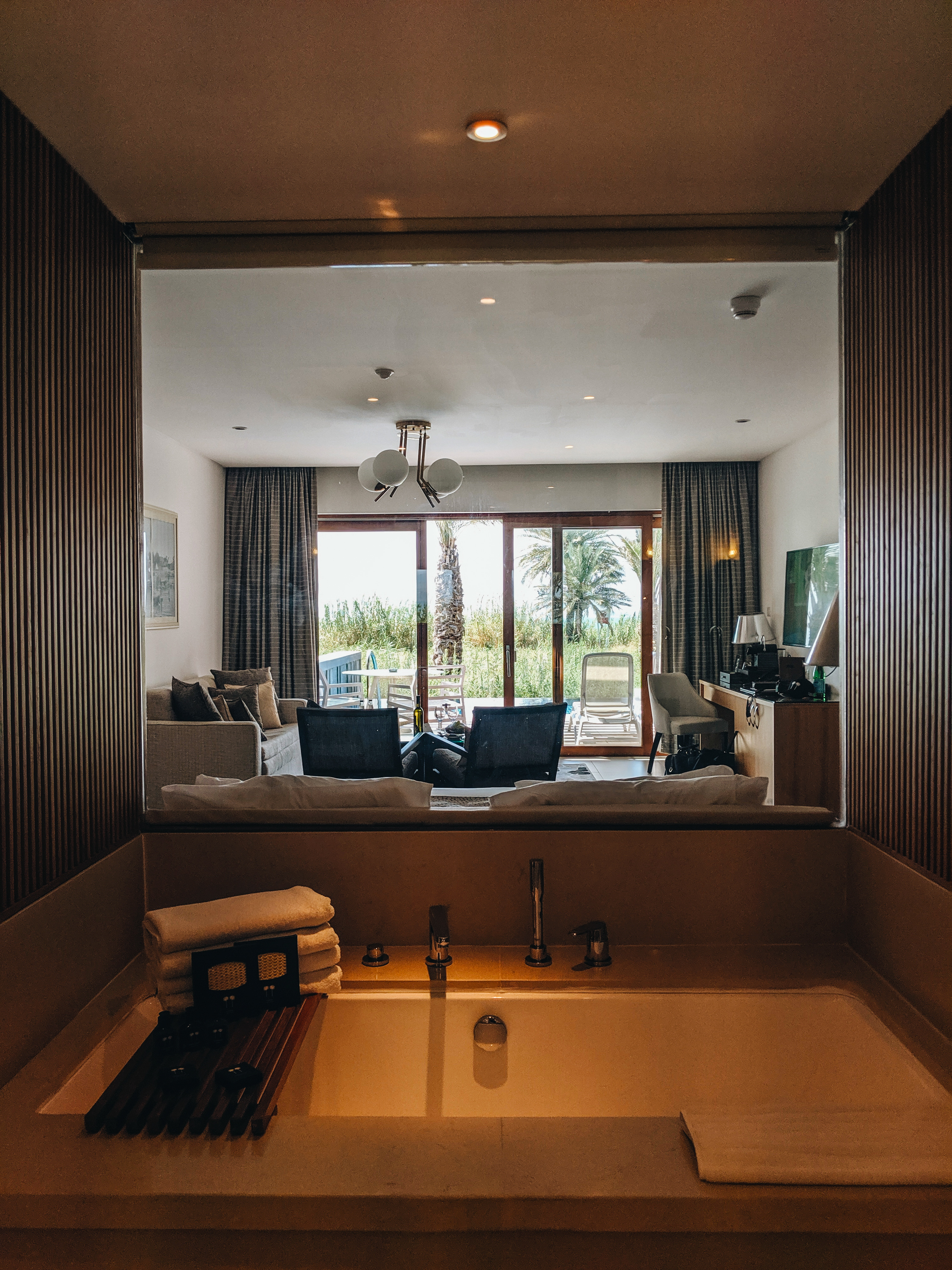 מה שבאמת שונה ומיוחד במלון הזה, הוא הקרבה לטבע. משום שמדובר בוילות קטנות ולא במבנה גדול, כל החדרים קרובים לקרקע ולקו החוף. למלון גם יש חוף ים פרטי ממש ליד הבריכה. אמנם חששנו שהמקום יהיה הומה והמוני, אך לא כך היה, האוירה היתה מאוד רגועה ונינוחה עם הרגשה של יוקרה אמיתית, אפילו שמדובר בחודש יולי.