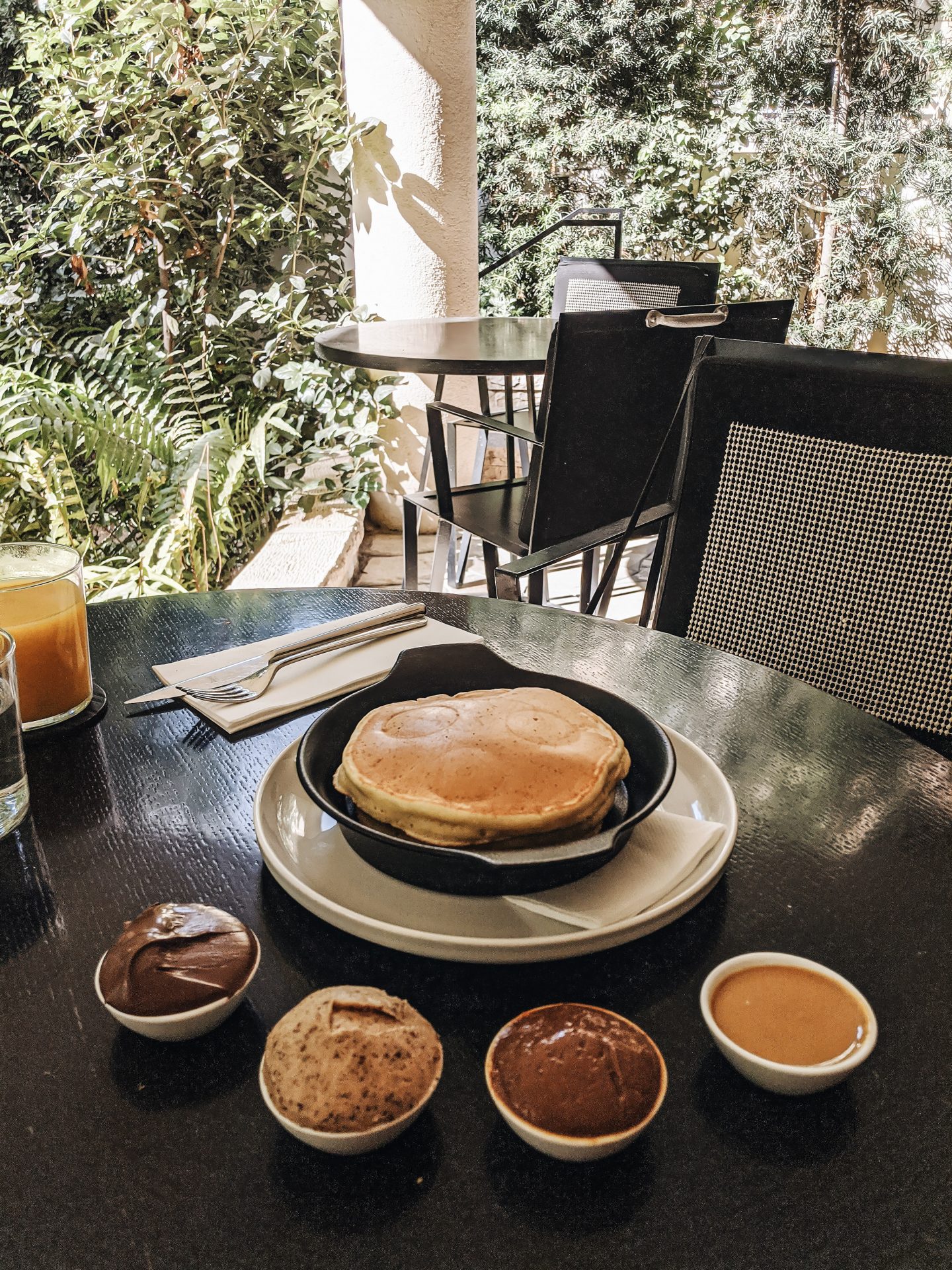 It was simply magical to enter through the hotel’s gate. We found a beautiful green courtyard at the end of the front steps. The breakfast area is on the entrance floor with minimalist and European design and even has a fireplace. You can also sit in the backyard, which is the option we chose on such a beautiful day.
