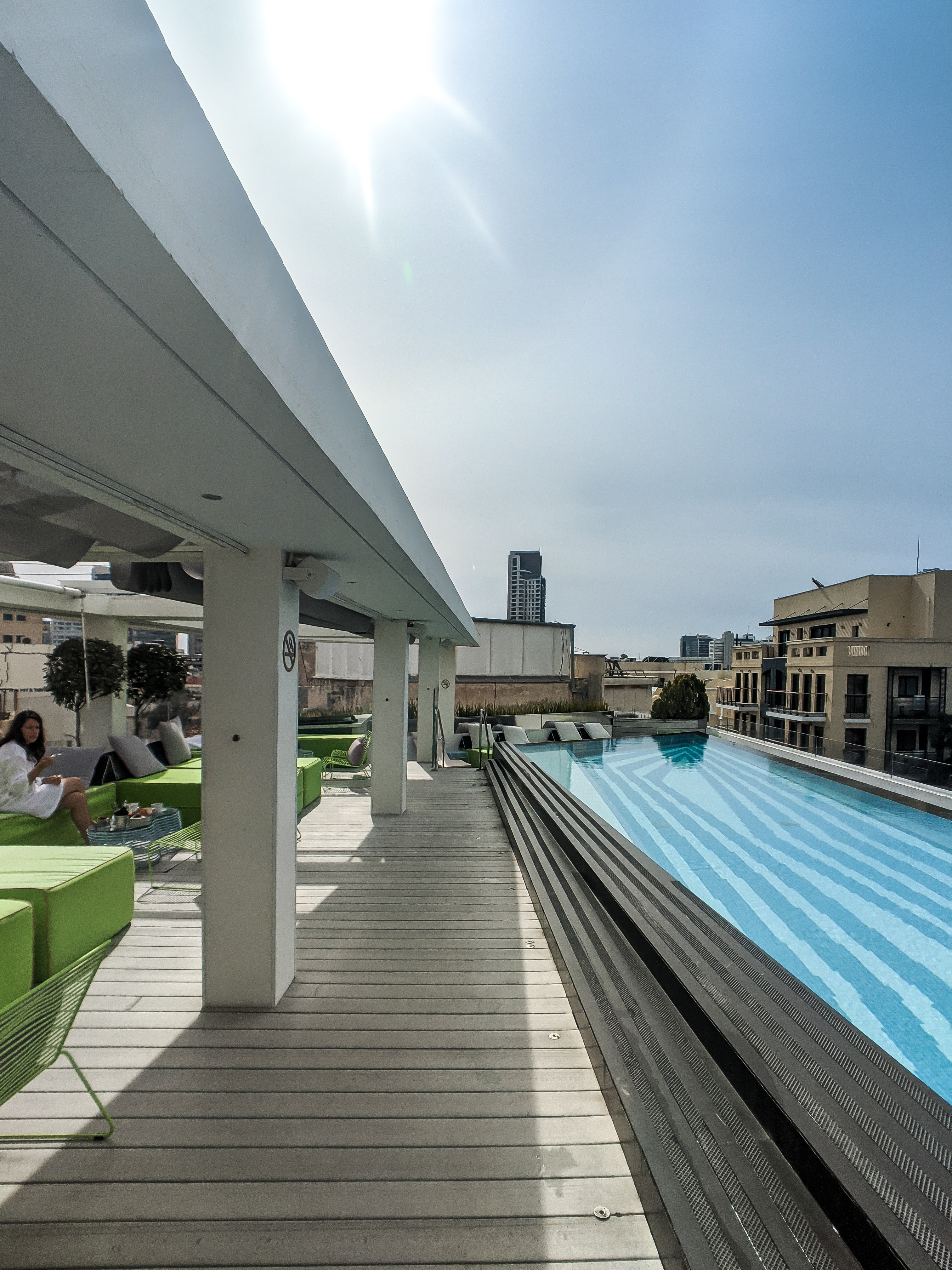 The rooftop is where all the magic happens! Stunning views of all of Tel Aviv and the sea, an infinity pool (heated in the winter!!) a pampering hot tub, and massage rooms.