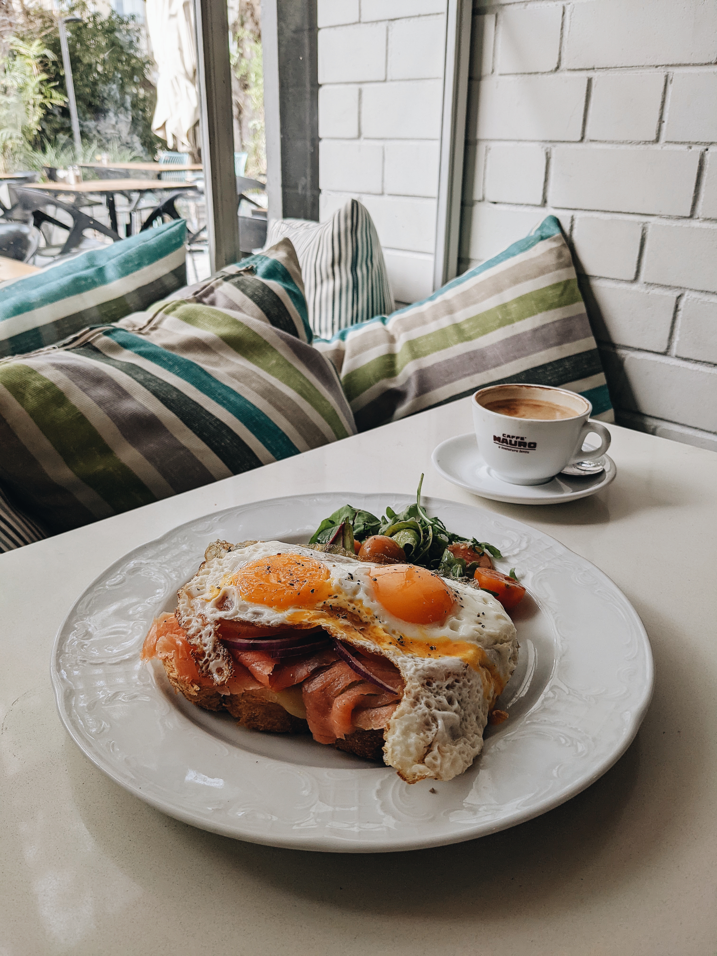 בית קפה בעיצוב אקלקטי עם שרות מלא עם מלצרים.